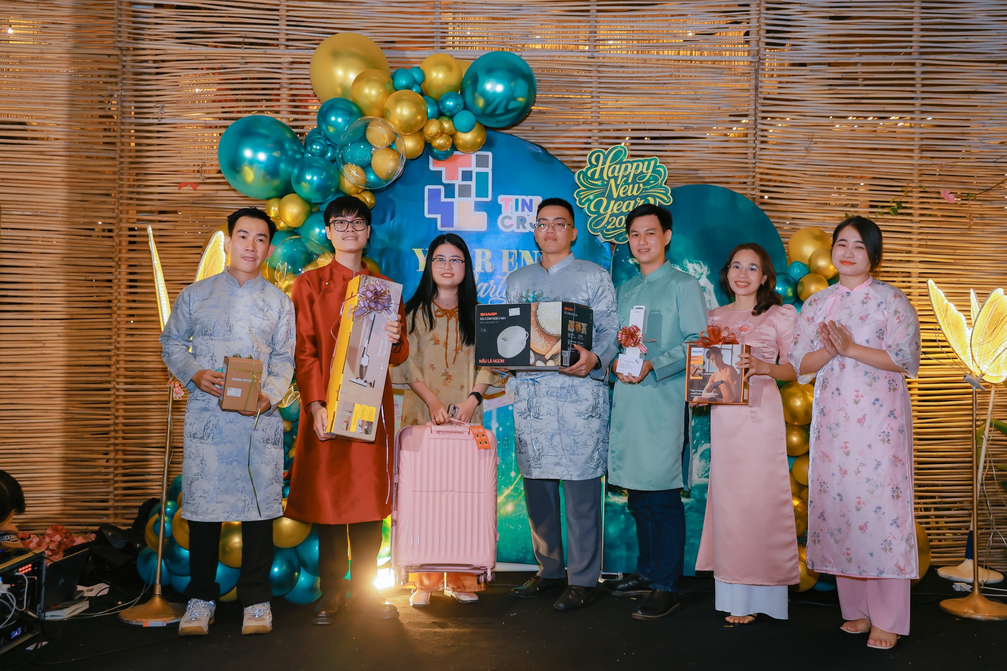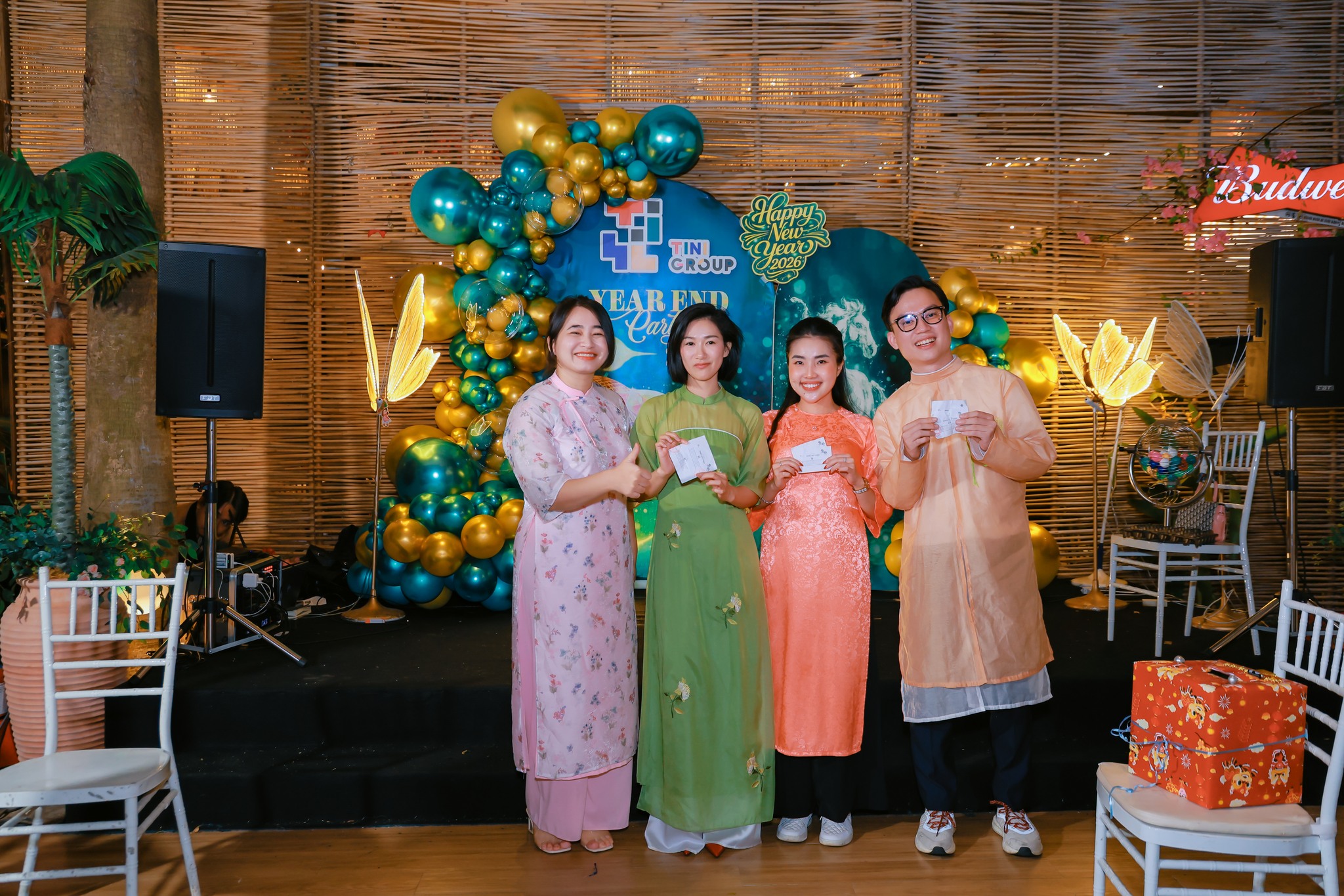 Niềm vui của đêm tiệc càng được nhân lên khi những phần thưởng và lì xì giá trị lần lượt tìm được chủ nhân. Đó là những khoảnh khắc mang lại sự háo hức và phấn khởi cho tất cả mọi người. Mỗi lần một cái tên được xướng lên, cả không gian như bùng lên trong tiếng reo vui, tiếng vỗ tay và niềm hạnh phúc lan tỏa. Những phần quà không chỉ mang giá trị vật chất, mà còn chứa đựng ý nghĩa tinh thần rất lớn. Đó là sự ghi nhận, là niềm vui đầu năm mới đến sớm và cũng là cách để lan tỏa may mắn, niềm tin và năng lượng tích cực đến từng thành viên trong đại gia đình TINI GROUP.
